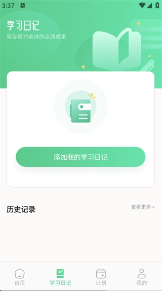 点击页面下方的“学习日记”,就能添加个人学习日记并查看历史记录。