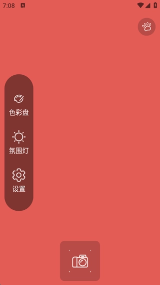 打开软件后,在首页就能找到色彩盘、氛围灯这类功能,同时也能进行拍照操作。
