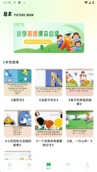 绘本页面收录了各类精彩的中文绘本,用户能够随时便捷地进行课本点读。