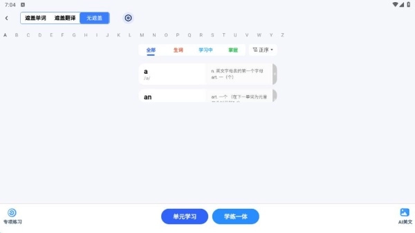 在书本页面,点击进入学单词板块即可。
