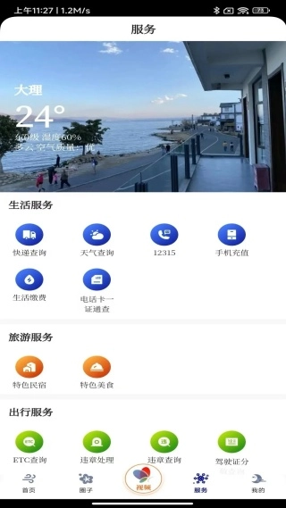 可以查看各种服务,快递查询、天气查询;