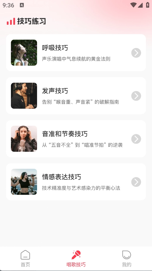 在唱歌技巧的学习中,能接触到各式各样的歌唱技巧,用户可以及时掌握并深入了解这些内容。