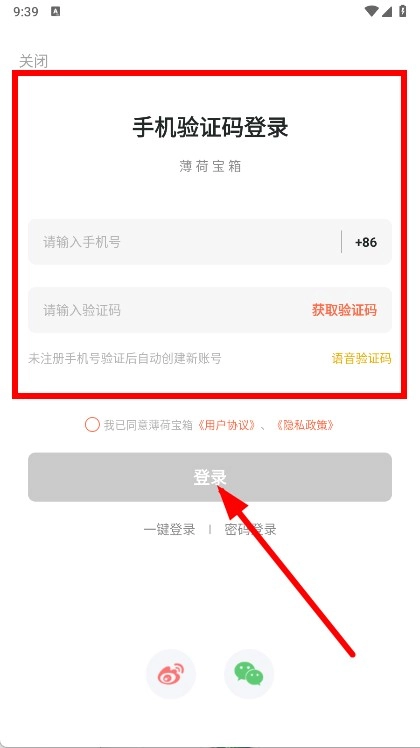 请输入您的手机号码,接着点击“获取验证码”按钮,随后将收到的验证码准确输入,再勾选相关选项,最后点击登录按钮即可完成操作。