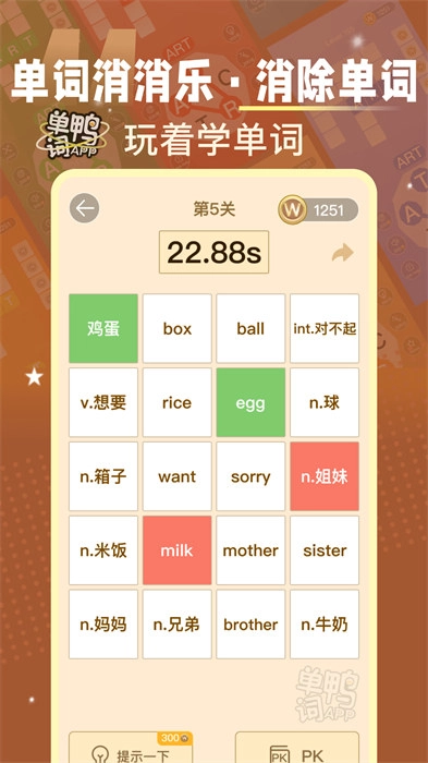这款全新的英语单词游戏益智学习软件,海量优质单词学习资源,结合科学记忆法,助力用户高效记忆单词,轻松提升词汇储备。