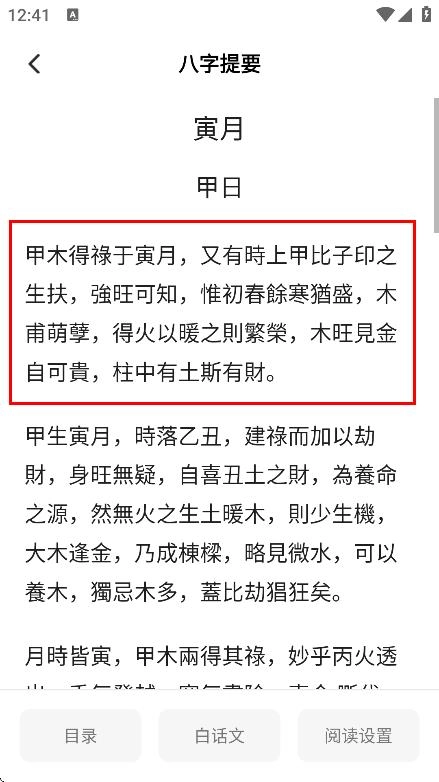 在寅月内容页面,可查看寅月下的具体文字内容。