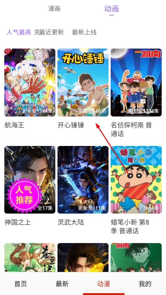 在动画分类列表里,找到“开心锤锤”并点击,就能进入这个动画的详情页面了。