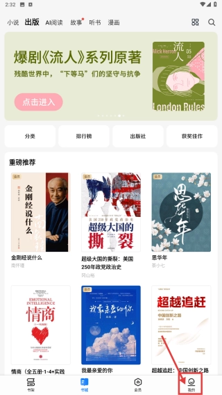 打开阅读类应用,点击底部的“我的”选项,进入个人中心页面。