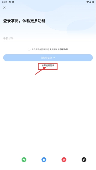 点击选择账号密码登录模式,进入登录页面。