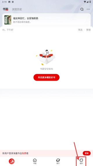 打开阅读类应用,点击底部的“我的”选项,即可进入个人中心页面。