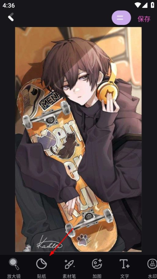 在图片编辑页面,点击贴纸,进入贴纸选择页面。