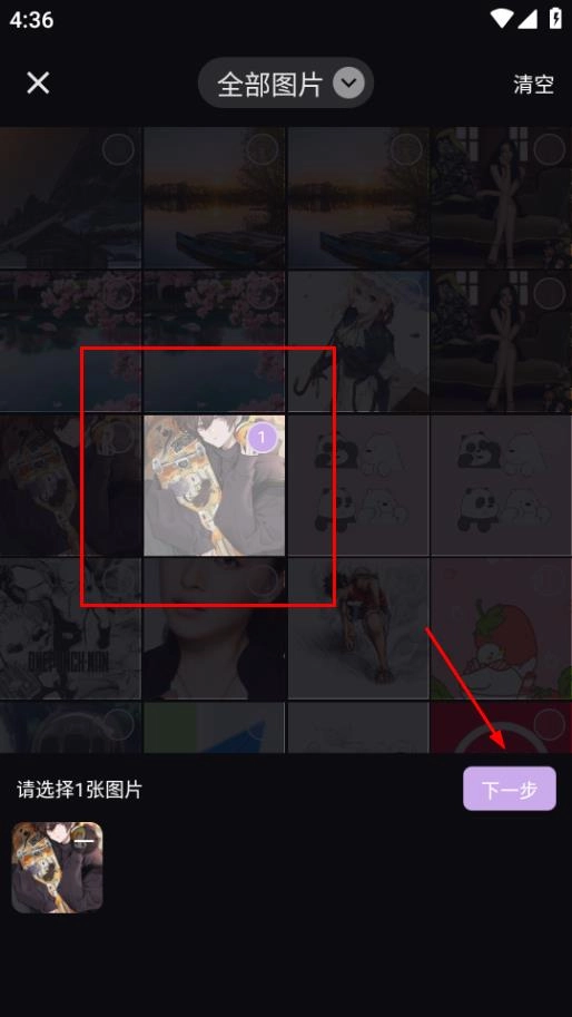 在所有图片的选择界面,选好图片后点击下一步,就能进入图片编辑界面。
