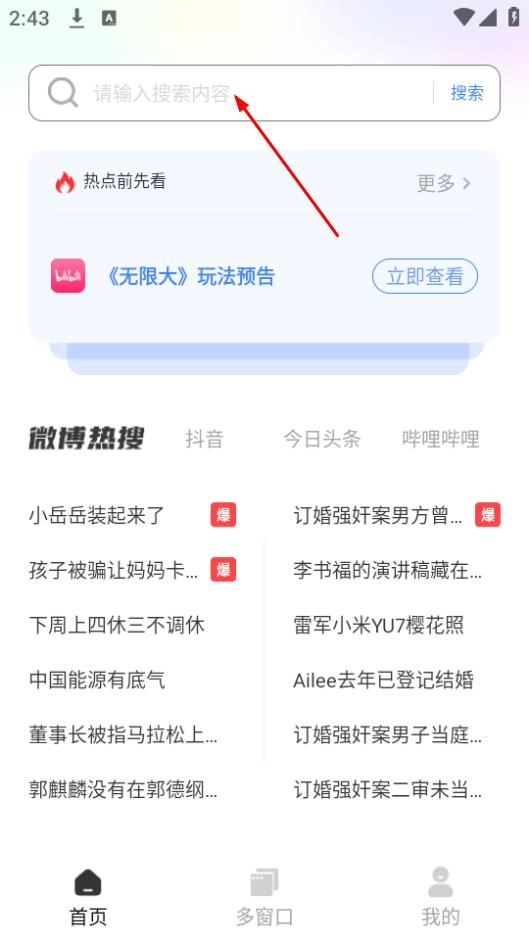 打开番柿浏览器后,点击页面顶部的搜索框,即可进入搜索页面。