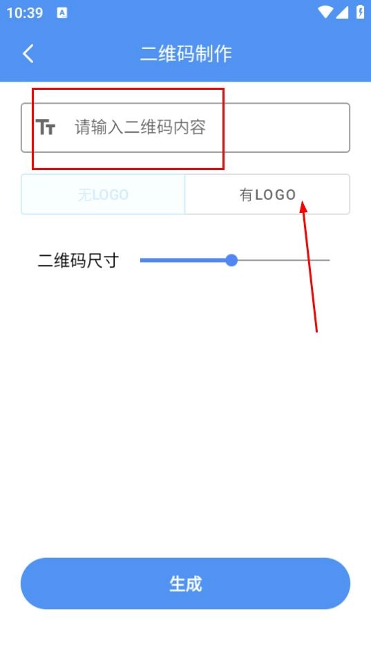 在二维码生成页面,于输入框中填写二维码内容,随后点击“添加LOGO”按钮。