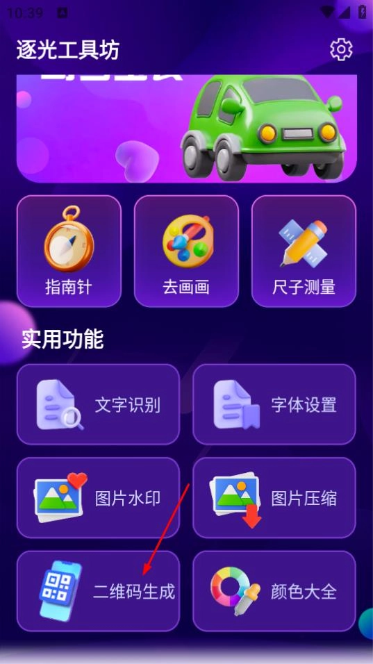 在逐光工具坊的主界面上,找到并点击“二维码生成”选项,即可进入二维码制作页面。