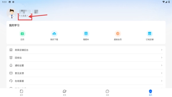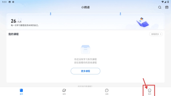 打开学习类应用,点击底部的“我的”选项,进入个人中心页面。
