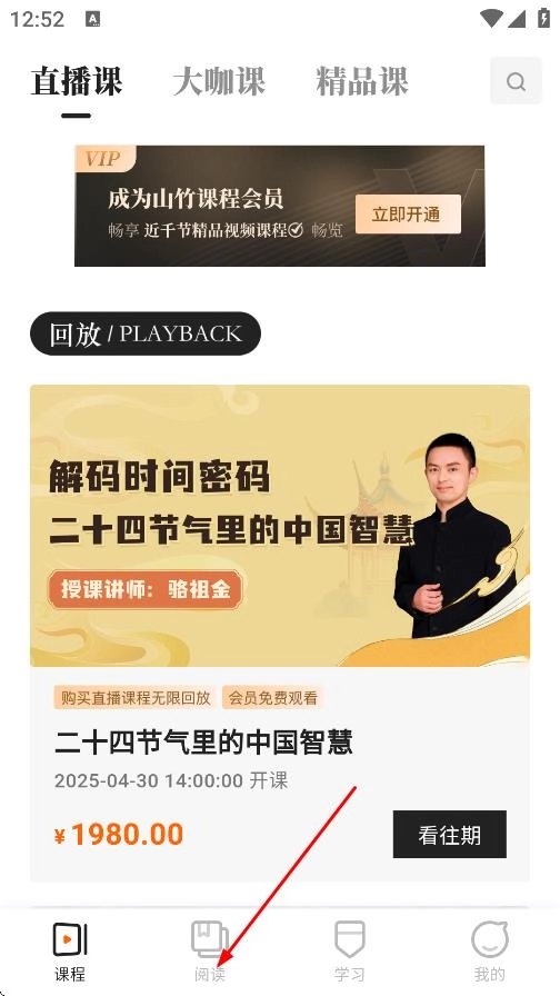 在课程页面,点击阅读,进入阅读页面。