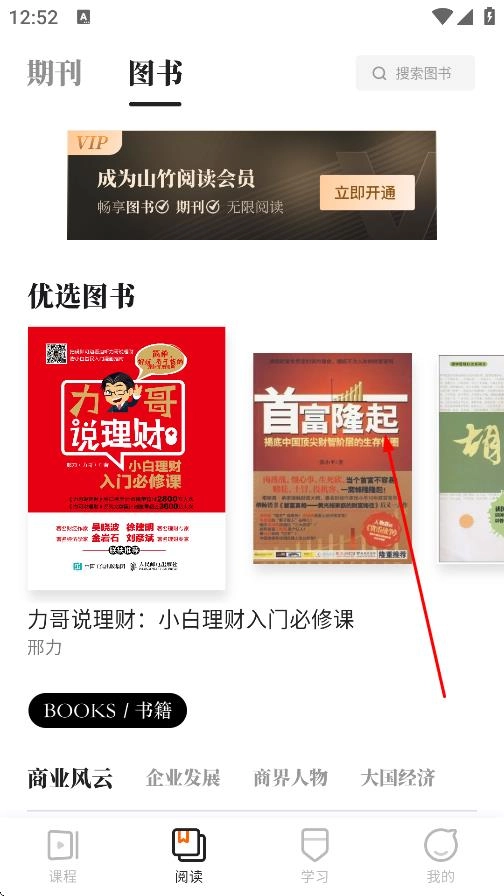 在阅读页面,点击图书,切换到图书板块。
