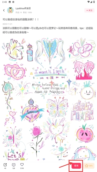 在画廊的配方清单里,找到能够制作纹身贴纸的涂鸦配方选项,点击进入详情页面。