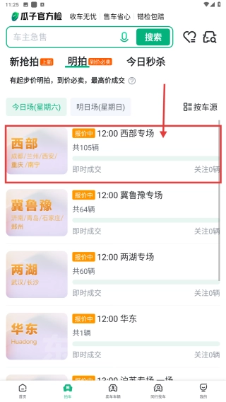 在明拍分类里,点击西部专场,就能查看该专场的车辆信息了。