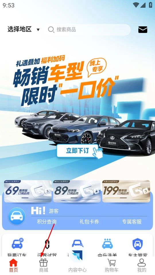 在中升GO首页,点击页面底部的商城入口,即可进入商城页面。