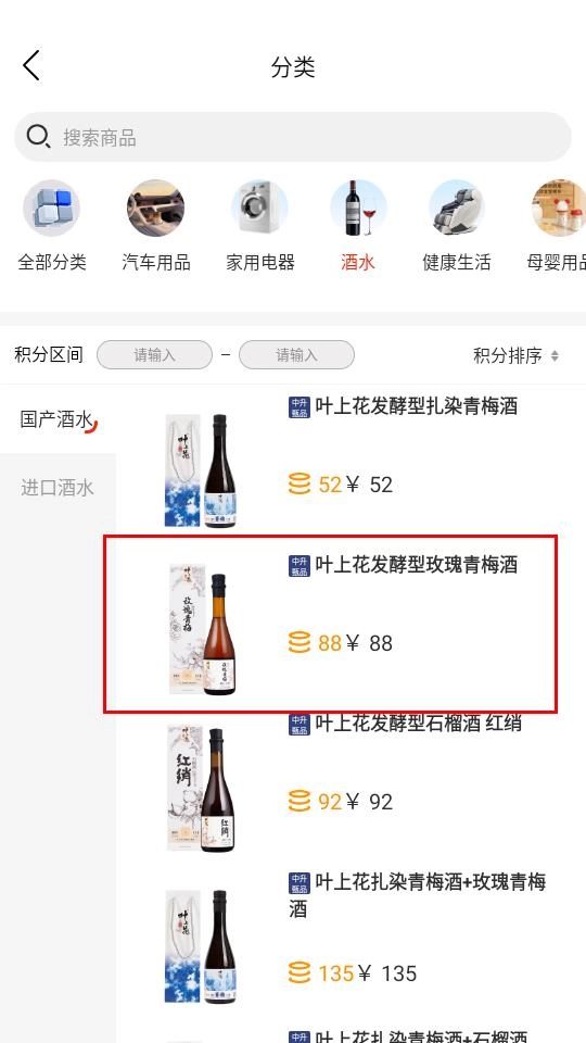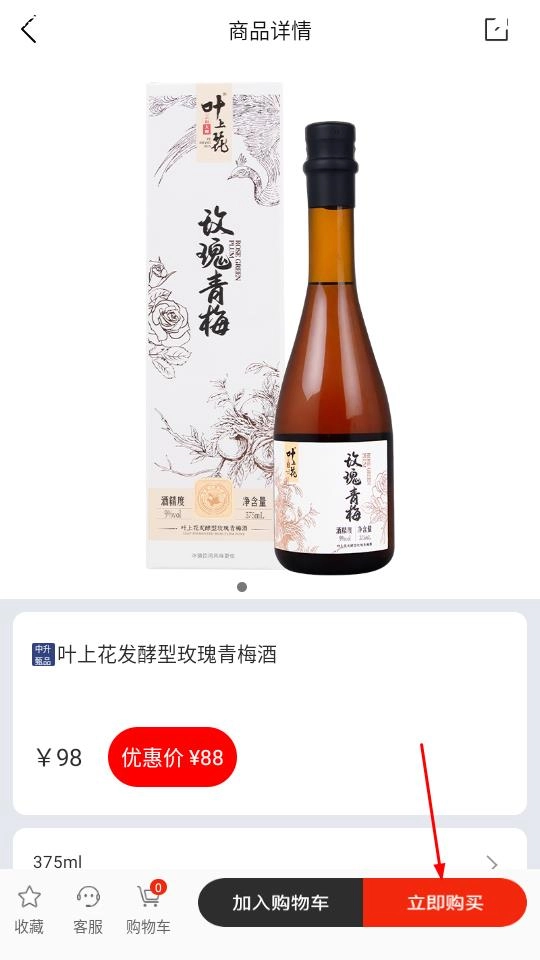 在酒水类商品的列表页面里,挑选出你喜欢的商品,然后点击进入它的详情页面。