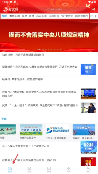 打开爱武城APP,进入首页后浏览本地新闻、直播等各类内容。