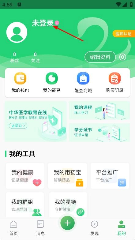 在软件首页,点击底部我的,进入个人页面。