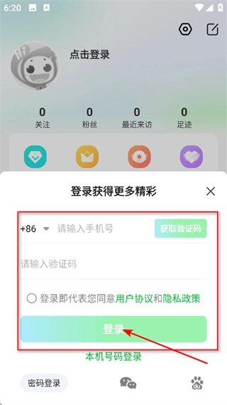 在个人页面,可以点击登录,弹出登录相关窗口。