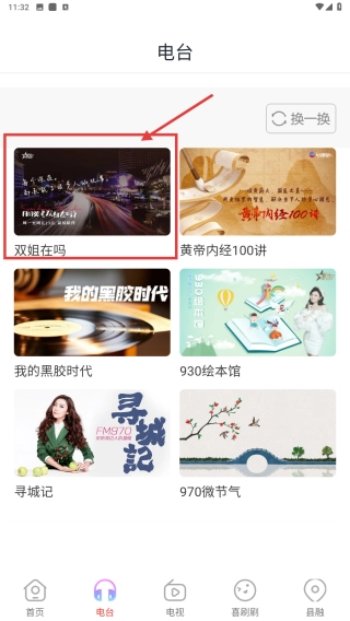 在电台页面找到“双姐在吗”节目卡片,点击进入节目详情页。