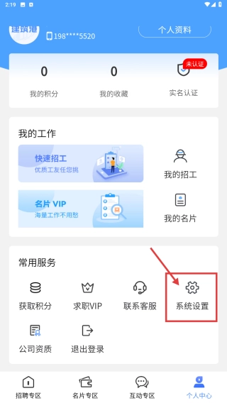 在个人中心,点击系统设置选项,进入设置功能区。