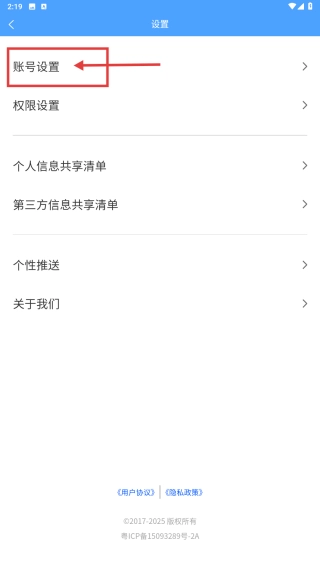 在设置页面中,找到并点击账号设置选项,即可进入账号管理界面。