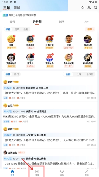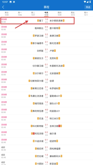 打开体育资讯类应用,点击底部的赛程选项,进入赛程页面。