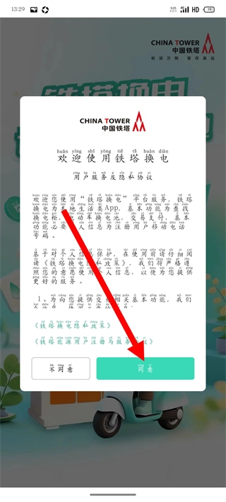 打开,在用户服务及隐私协议页面点击同意。