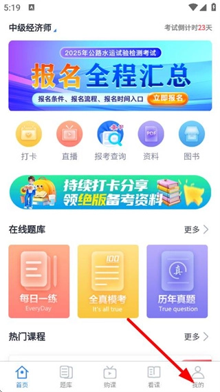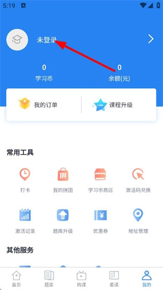 在速题库首页中,点击底部我的,进入个人页面。