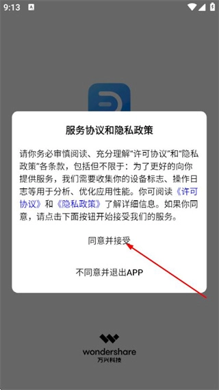 在服务协议与隐私政策的弹窗里,点击同意并接受相关条款,即可进入主页面。