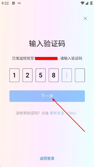 在验证码输入页面,填写好验证码后点击下一步,即可完成登录流程。