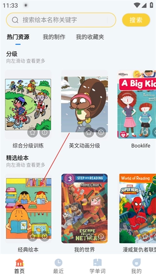 打开软件首页后,在精选绘本板块里找到经典绘本并点击,即可进入经典绘本的专属页面。
