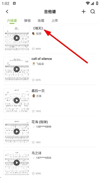 在吉他谱页面,挑选你想查看的吉他谱,然后进入该吉他谱的详情页面。