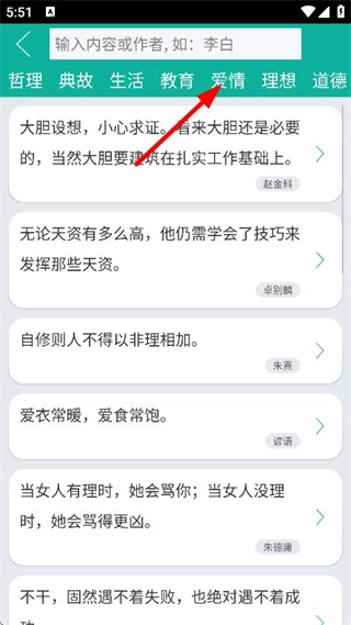 在爱情类名人名言的列表里,挑选你想查看的名言,然后点击进入详情页面。