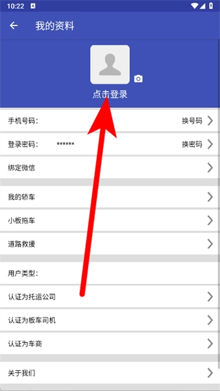 在我的资料页面,点击登录。