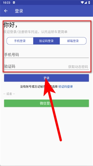 挑选登录的方式,填写对应的信息后点击登录按钮,以此完成注册流程。