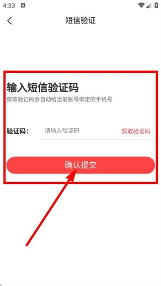 在短信验证的页面上,输入验证码之后,点击确认提交按钮,即可开展密码修改的操作。