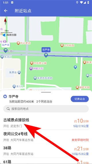 为用户查询公交站点周边的商场、医院、学校等各类设施,并提供从当前位置步行至该站点的导航路线,助力用户迅速定位候车点,有效解决寻找公交站点的困扰。