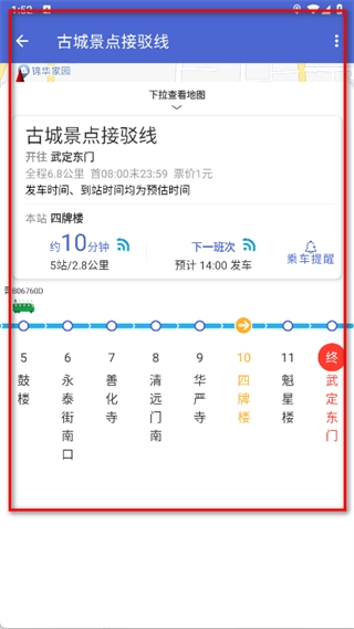 查看所选线路的详细信息,包括站点、发车间隔等。