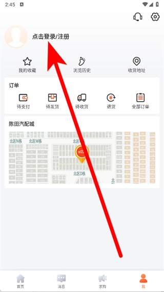 在个人页面,点击点击登录注册,进入登录界面。