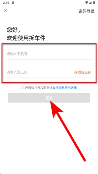 在登录页面,先输入手机号码,接着点击获取验证码的按钮,待收到验证码后将其输入,随后点击登录按钮,这样就完成了注册登录的流程。