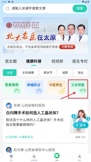 打开医疗服务类应用,点击底部的头条选项,即可进入头条页面。