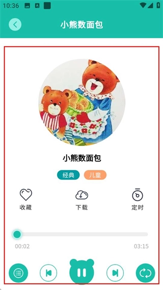 在故事播放页面,既能播放小熊数面包的故事,也可以点击切换收听下一个故事。