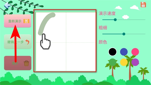 在书写页面,点击重新演示,观看书写演示。