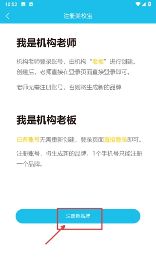 在注册选择页面,点击“注册新品牌”按钮,即可进入身份选择界面。